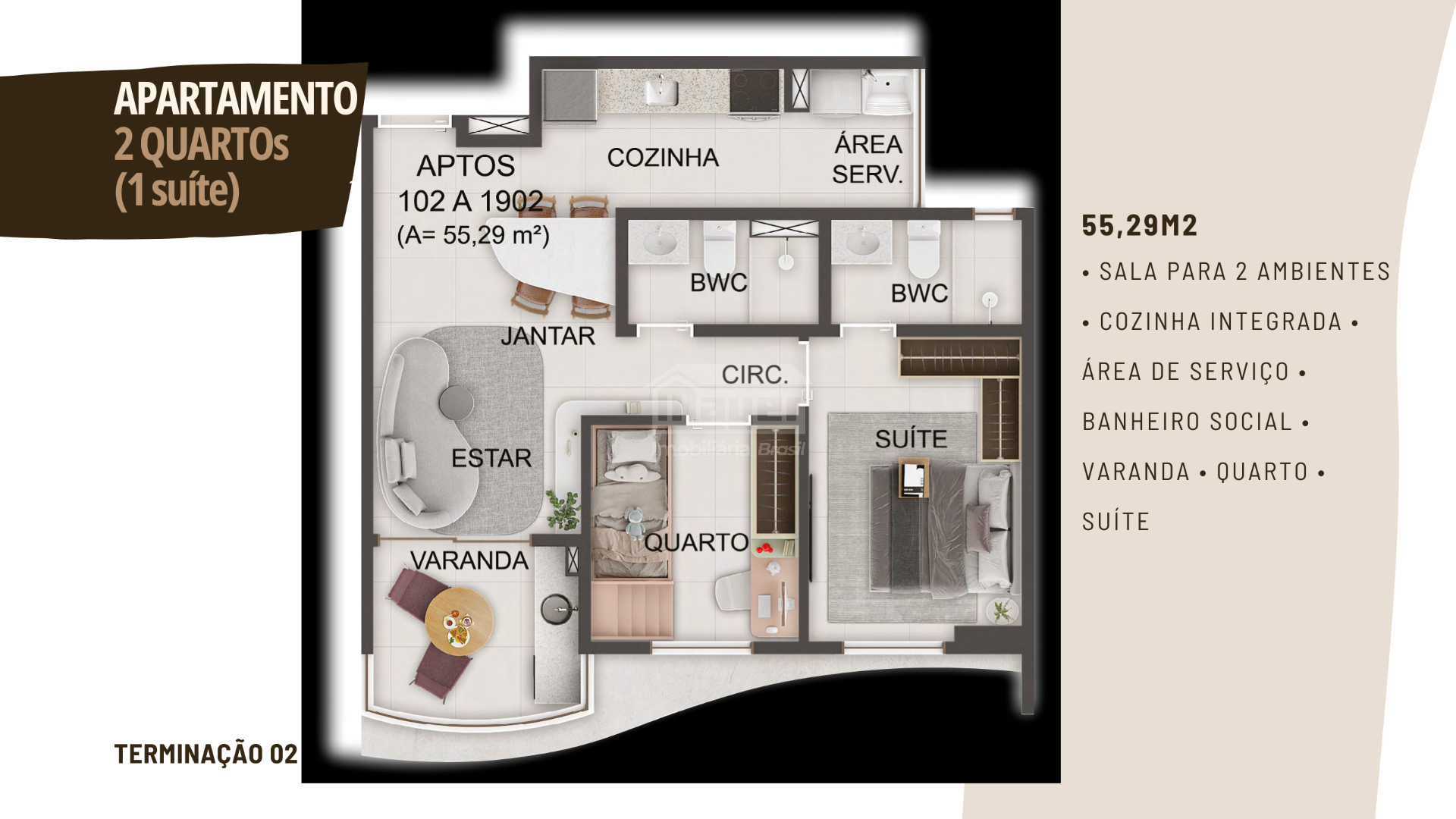 Porto Setubal | Apto de 2 quartos sendo 1 suite | 56,23m² | Setubal | Design Moderno | lazer Completo Apartamento